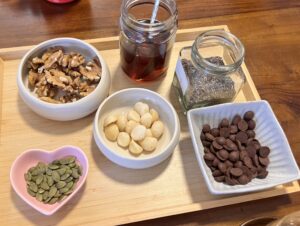 You can use any nuts you have on hand. I recommend raw nuts such as walnuts, almonds, macadamia, chia seeds, sunflower and pumpkin. I keep these stocked in my pantry. You can get them at an affordable price in the links above.